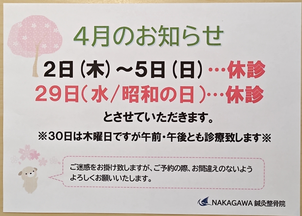 4月のお知らせ
